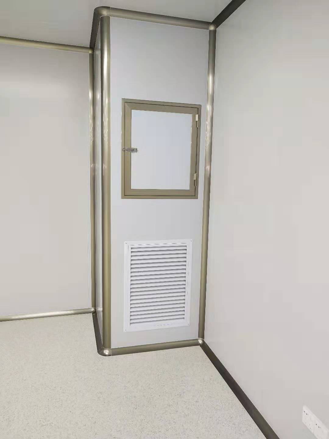 洁净车间的空气循环是通过设置在吊顶内的空调机+末端FFU高效送风单元完成的。其气流组织采用上送下侧回。风系统只设回风管,回风管通过室内回风竖井将室内空气输送至FFU回风口来实现回风。
